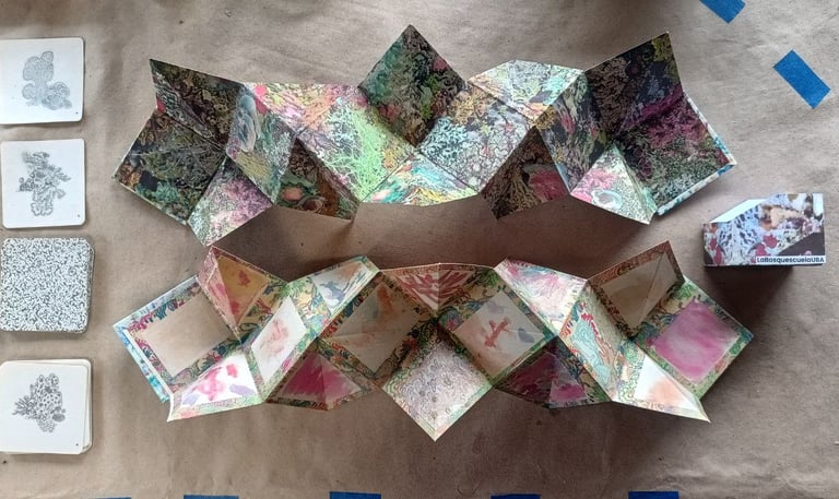 Este set de stickers son el reflejo de nuestros trazos marcados en familia, obras artìsticas autènticas de cada unx de lxs exploradorxs que reflejan la impresiòn causada por nuestros encuentros multiespecie en donde los lìquenes fueron los anfitriones que nos condujeron a viajar por un mundo pequeño, complejo y emocionante con nuevos aprendizajes.