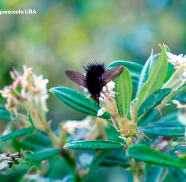 En la mosca de medias blancas (Bombyliidae), leo una conexión especial y delicada con nuestras transiciones de bosques, pues la he visto visitando flores de hierbas en mi huerta, pero también la he visto visitando flores de los árboles de tuno, que están presentes en la transición entre el ecosistema de subpáramo y bosque alto andino, le gusta la niebla y la humedad, sí.